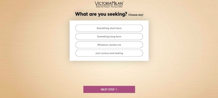You’ll need to enter your gender, marital status, and dating preferences first. Then indicate your email address and put a check to show your agreement with the Terms of Use and Privacy Policy. You may want to join a VictoriaMilan VIP club, so put a check in the corresponding field. Press continue, and you’ll see a Username field. Since Victoria Milan is a discreet dating site, it doesn’t allow users to enter their real names. Choose a username describing you instead of your name.